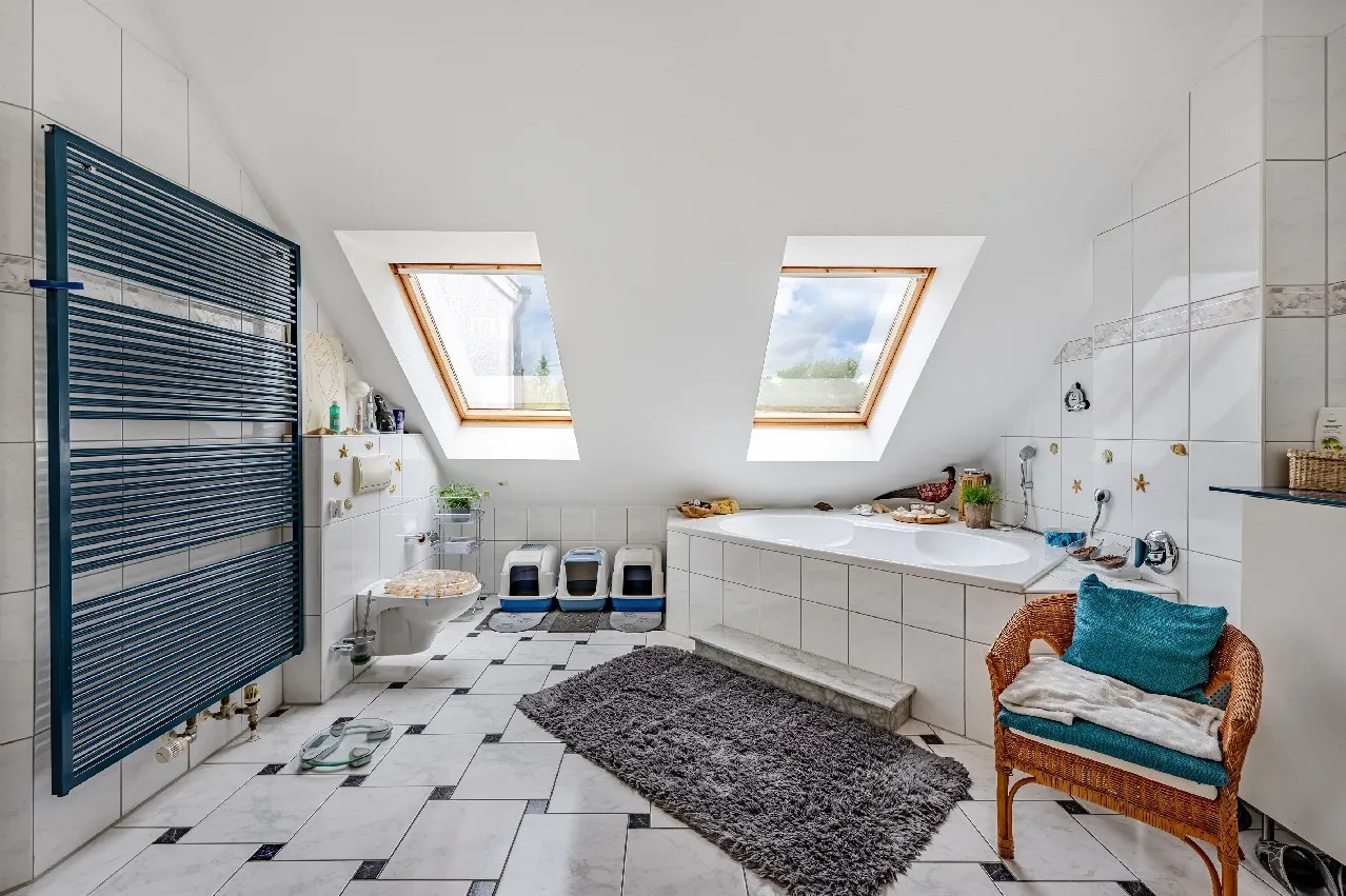 - Bad mit Dusche, Wanne, Fenster