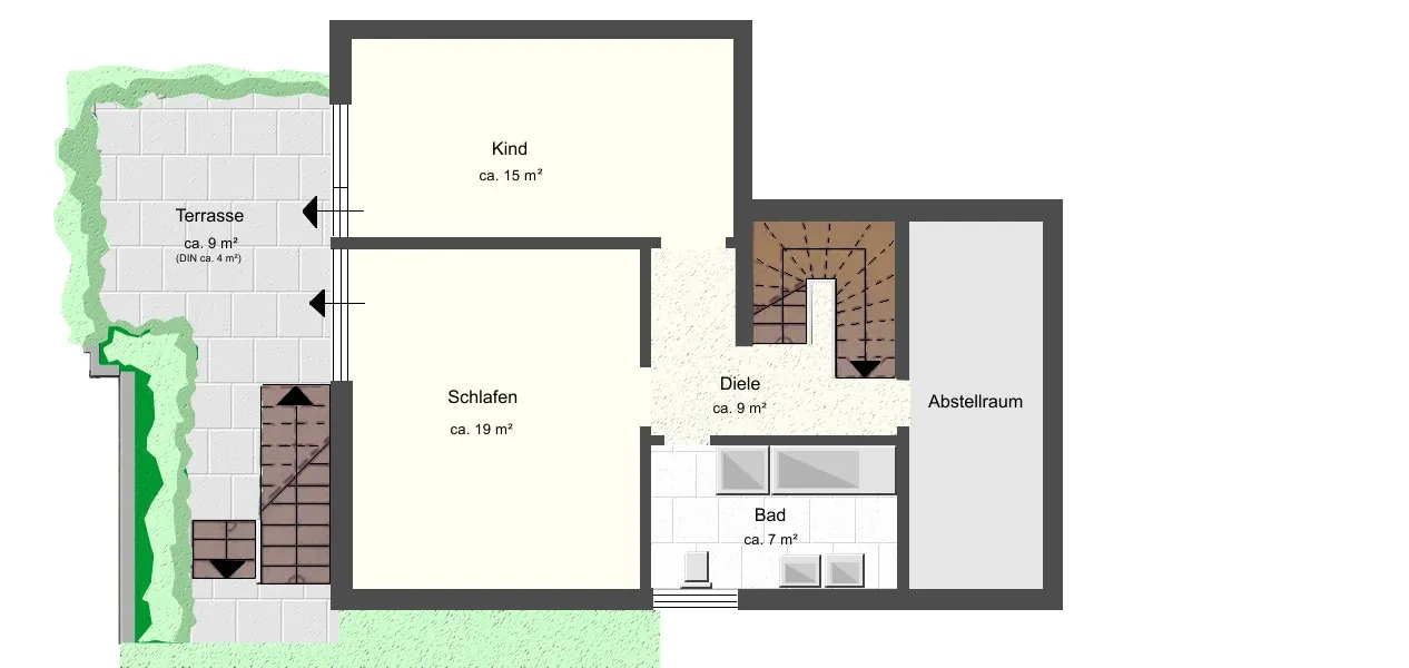 - Bad mit Dusche, Wanne, Fenster