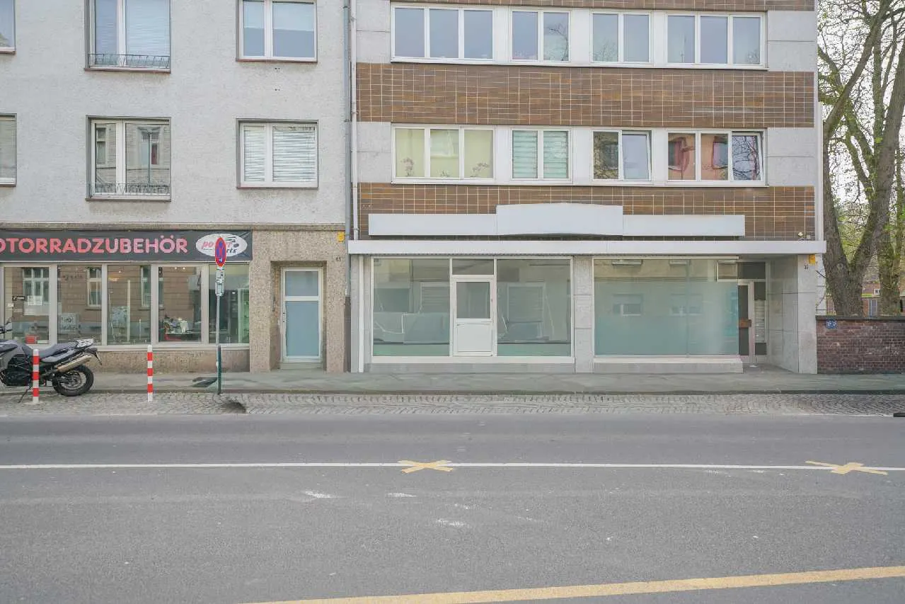 Oberrath: Gut sichtbare Praxis-/Ausstellungsfläche mit großer Schaufensterfront